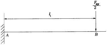 雙向壓金屬密封蝶閥結(jié)構(gòu)特點(diǎn)是上、下楔塊軸與閥體軸孔為過(guò)渡配合,上、下楔塊軸孔與閥桿為間隙配合。介質(zhì)反向流動(dòng)時(shí),向下推動(dòng)上、下楔塊,上、下楔塊推動(dòng)蝶板向閥體密封面施加密封力,蝶板密封力和介質(zhì)壓力使上、下楔塊軸發(fā)生彎曲變形,由于上、下楔塊軸孔與閥桿是間隙配合,上、下楔塊軸彎曲變形不致影響閥桿發(fā)生彎曲變形,閥桿在蝶閥啟閉過(guò)程中只受拉伸和壓縮。上、下楔塊的彎曲變形見圖 4。圖 4 中上、下楔塊的受力簡(jiǎn)化為懸臂梁,A 點(diǎn)固定,為閥體對(duì)楔塊的支撐點(diǎn),B 點(diǎn)為上、下楔塊的受力點(diǎn),作用力為 FMF/2,則彎曲變形量為:
